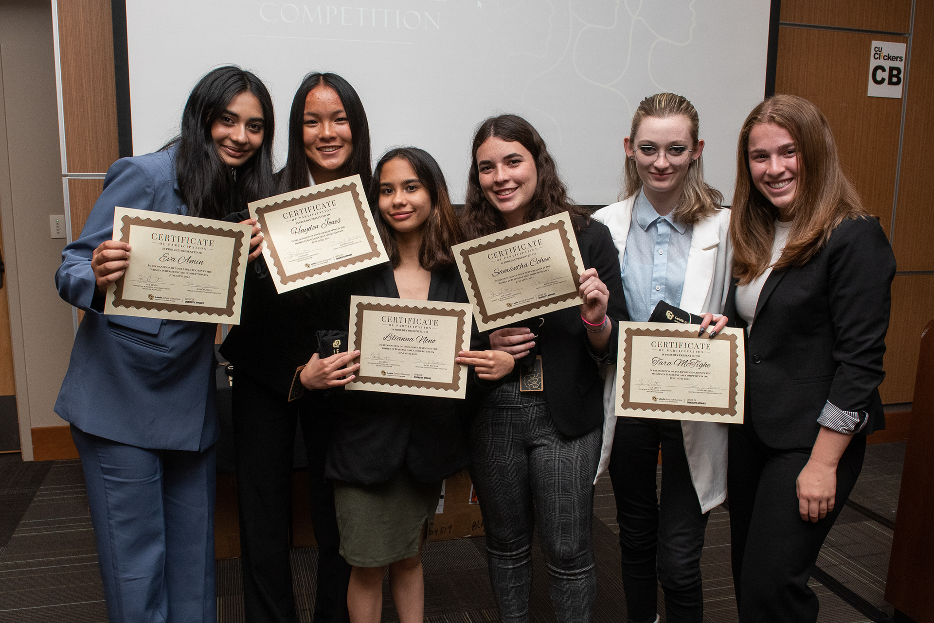 In 2022, I was selected to join and compete in the Women's Business Case Competition at The University of Colorado Boulder. Participants compete against each other in a case challenge focused on issues affecting women. My team met each other for the first time and worked rigorously for 72 hours before presenting our solutions to a panel of judges made up of university professors. My team, "Women in Jerseys" won the case competition and a scholarship to CU Boulder Leeds School of Business.